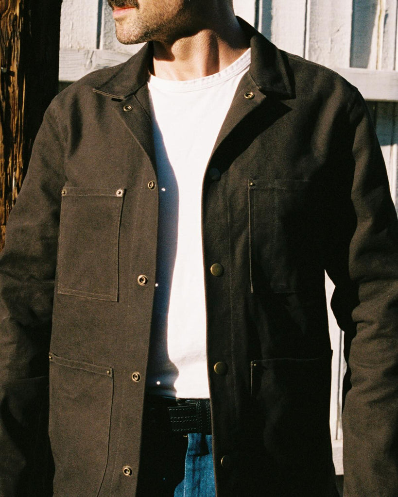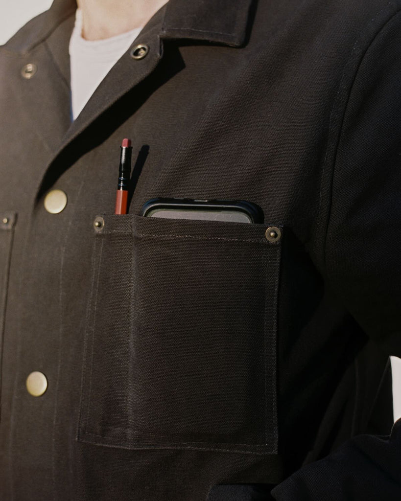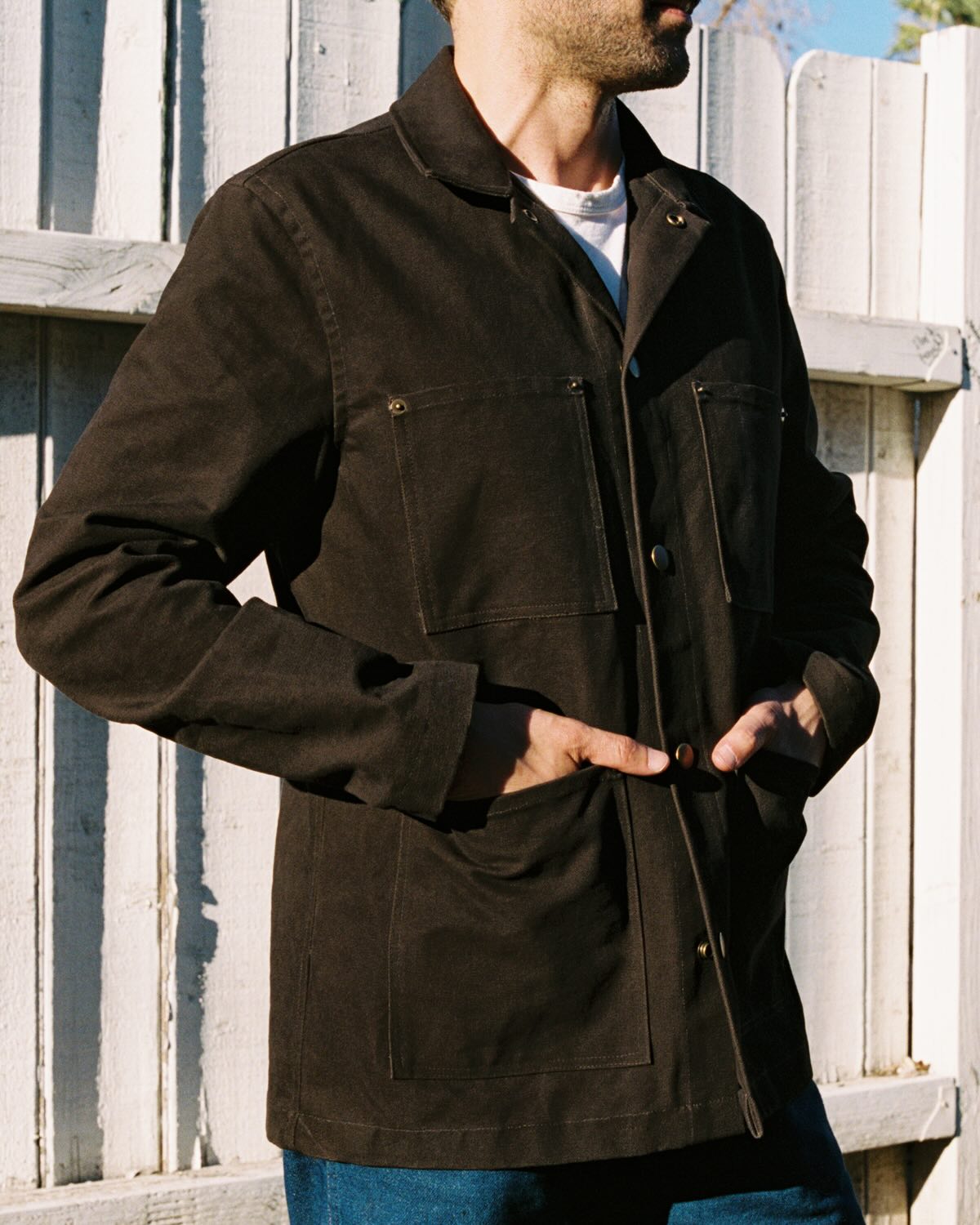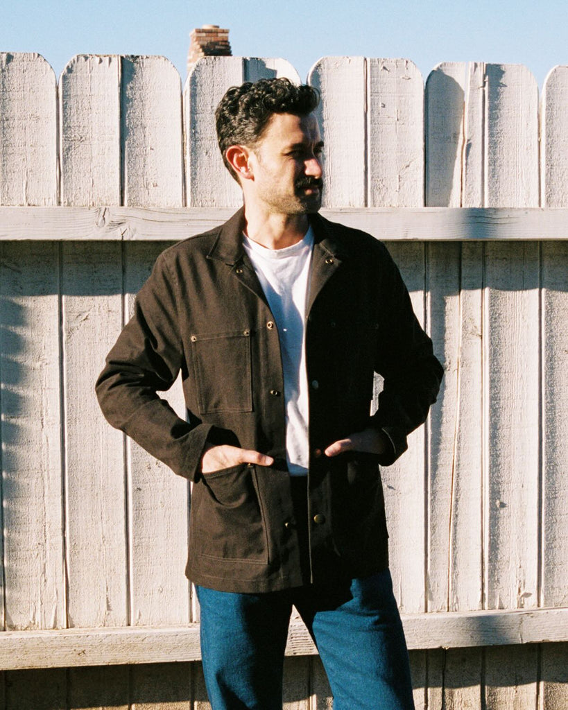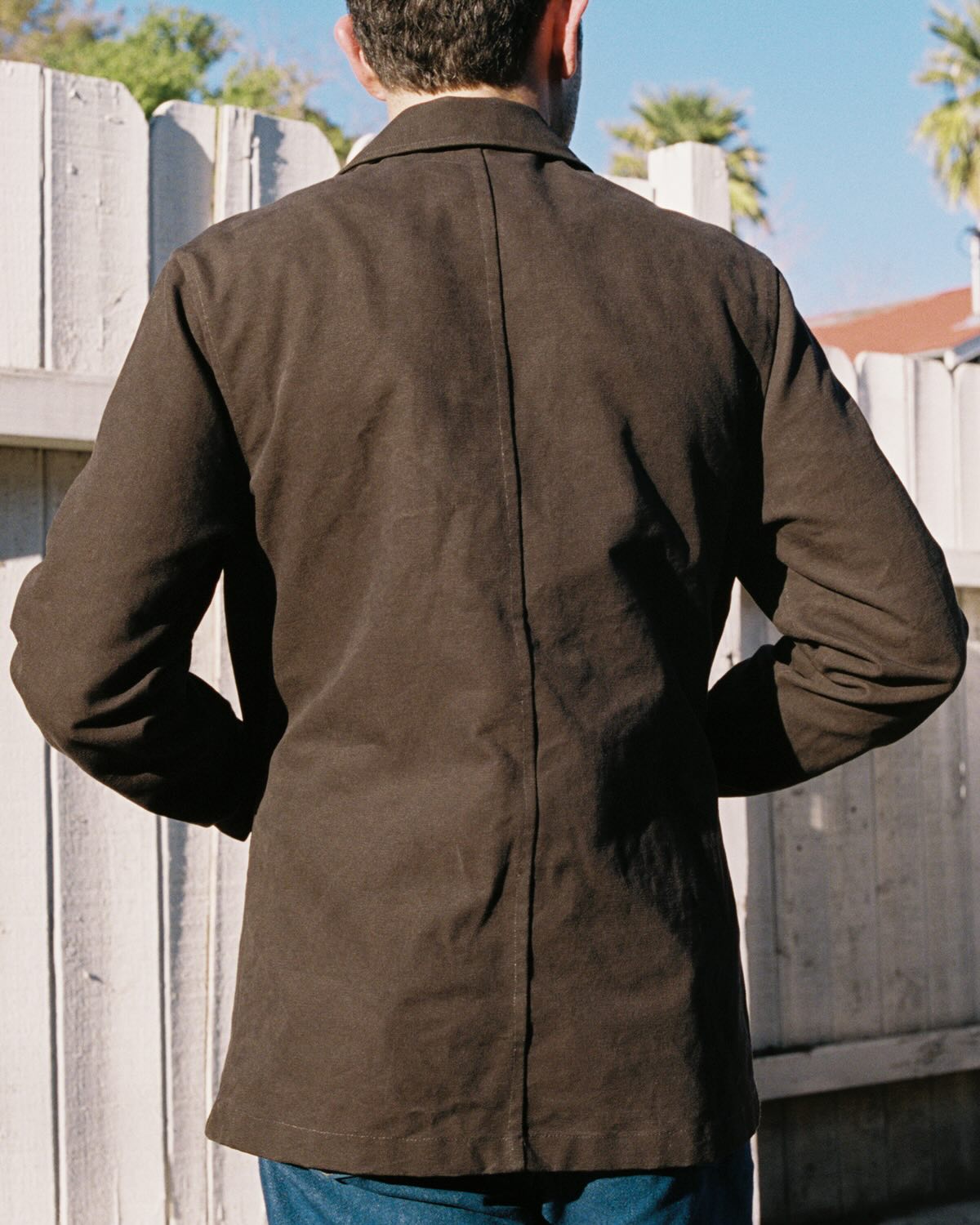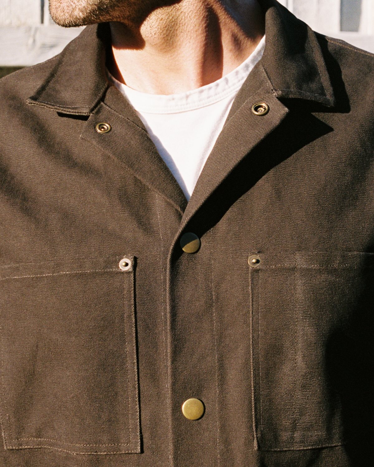 Crafted from durable, American-made dark brown canvas from Mt. Vernon, this unlined coat is part of our initiative to cut and sew garments locally in Arizona. Each one is made to order in small batches.